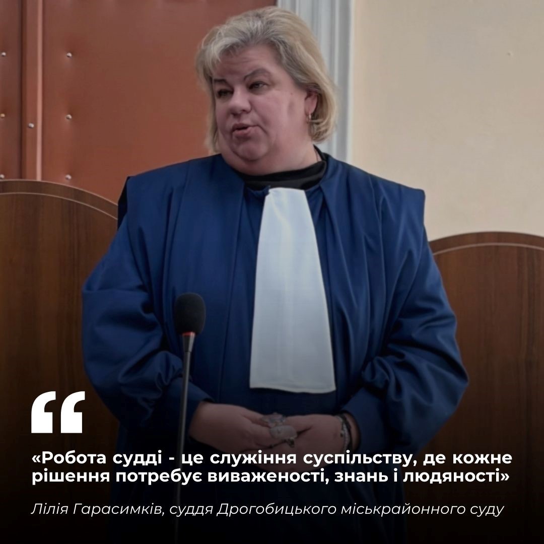 1. Liliia Harasymkiv, judge of the Drohobytskyi City-Raion Court of Lviv Oblast.